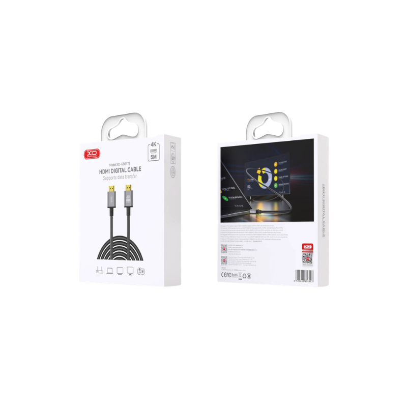XO GB017B je kvalitetan HDMI 2.0 kabl dužine 5 metara, dizajniran za pouzdan prenos video i audio signala između uređaja sa HDMI izlazom i ulazom.